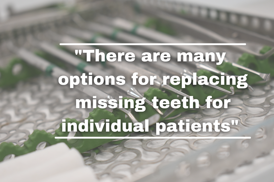 There are many options for replacing missing teeth for individual patients. These are generally bespoke (specifically to the individual) which is why it is so important to be assessed by a well-trained and experienced clinician to offer you all the possible options for treatment.