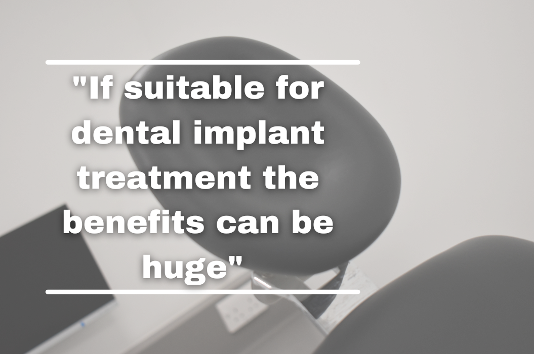 If suitable for dental implant treatment the benefits can be huge. The ability to have a replacement of an individual tooth without wearing a denture can be massive for patients.