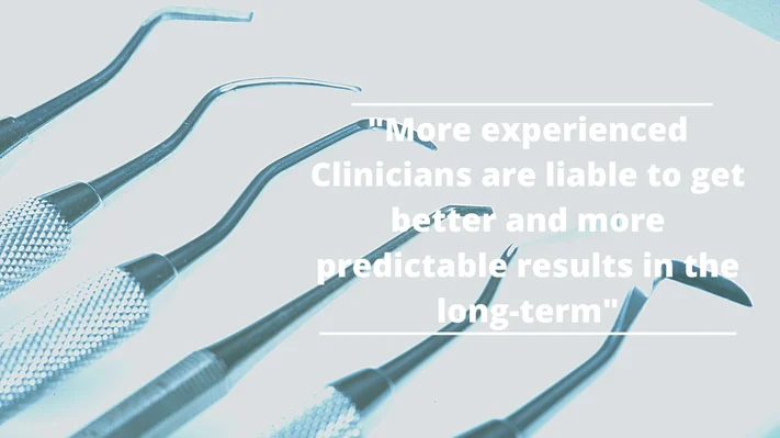 In general terms, more experienced Clinicians are liable to get better and more predictable results in the long-term.